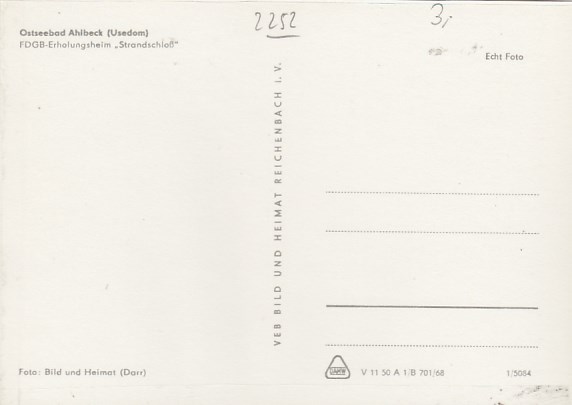 Ostseebad Ahlbeck FDGB-Heim Strandschloß 1968