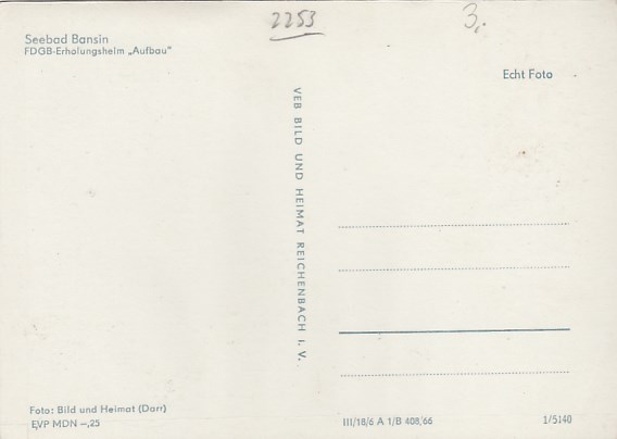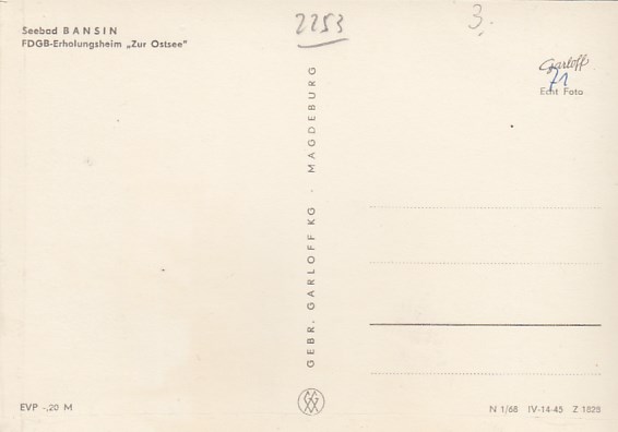 Ostseebad Bansin FDGB-Heim Seehof 1968