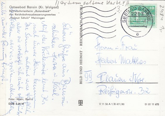 Ostseebad Bansin Ferienheim Rolandseck 1980