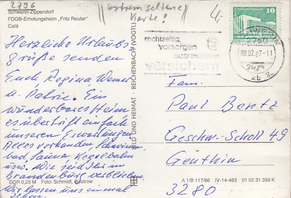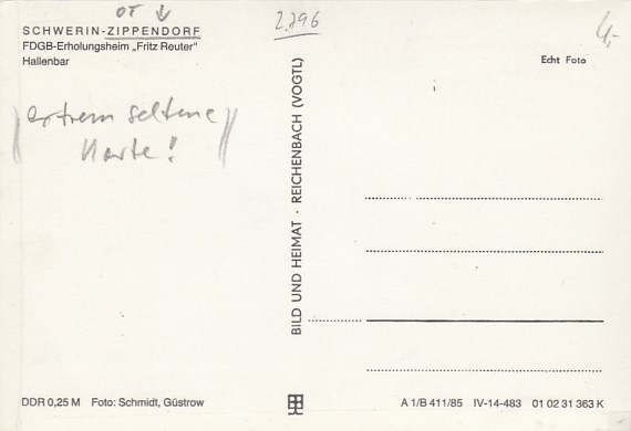 Schwerin OT Zippendorf FDGB-Heim Fritz Reuther 1985