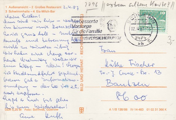 Schwerin OT Zippendorf FDGB-Heim Fritz Reuther Eis-Milch-Bar 1986