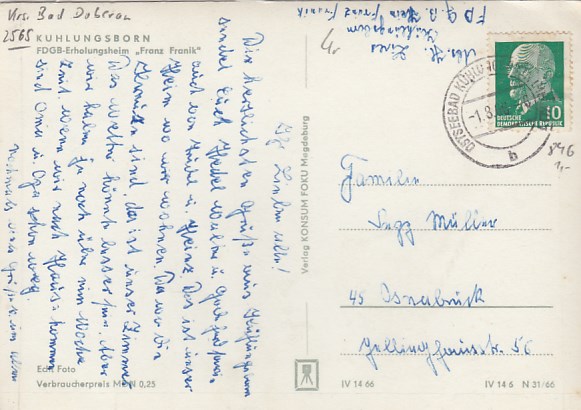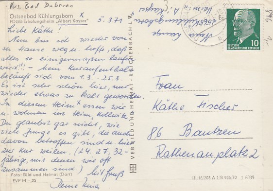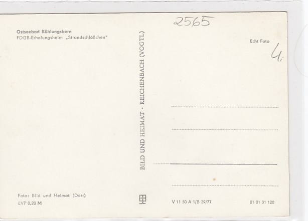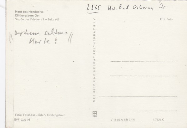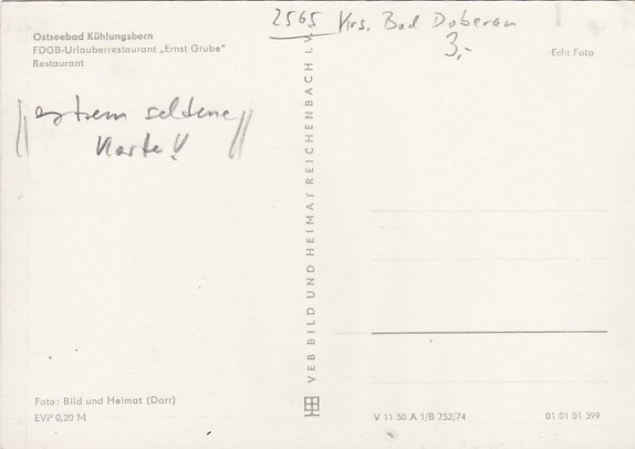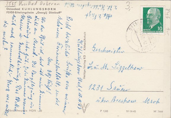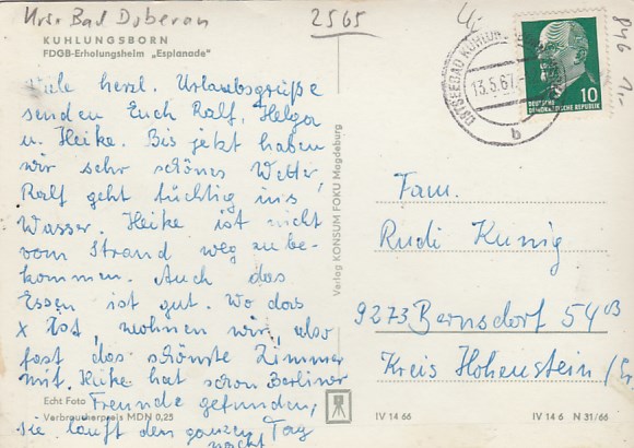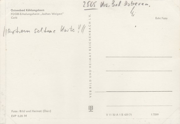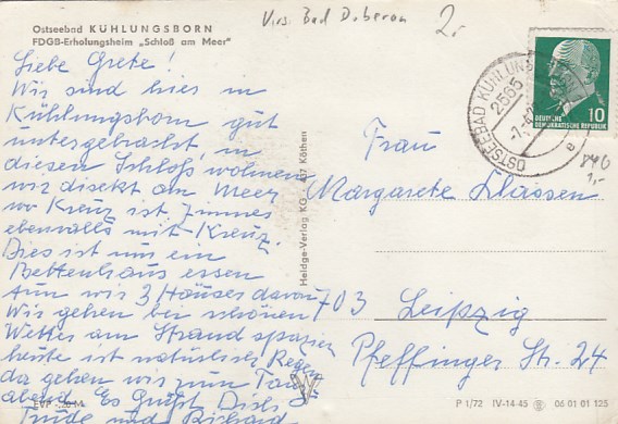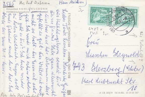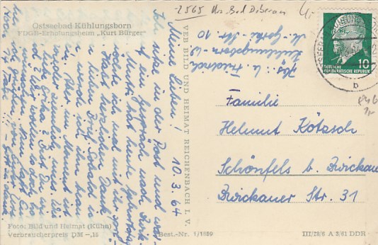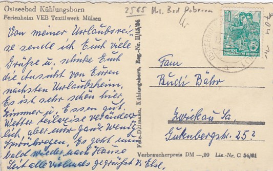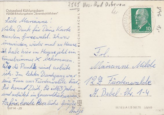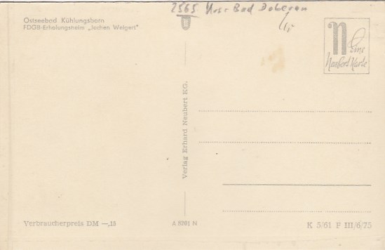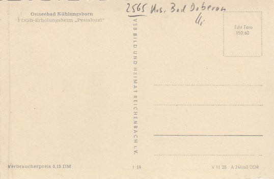 Ostseebad Kühlungsborn Ferienheim Erwin Fischer 1965