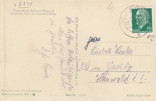 Ostseebad Sellin auf Rügen FDGB-Heim Ferienglück 1967