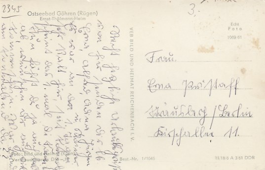 Ostseebad Sellin auf Rügen Erholungsheim Einheit 1968