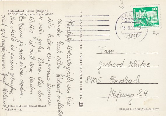 Ostseebad Sellin auf Rügen FDGB-Heim Ferienglück 1973
