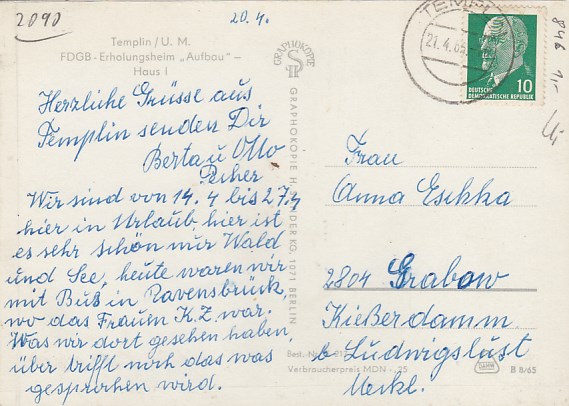 Feldberg in Mecklenburg FDGB-Heim Sühr 1961