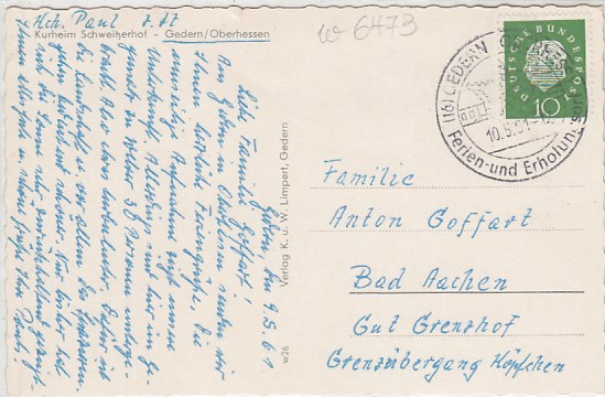Gedern Hessen Kurheim Schweizerhof 1961