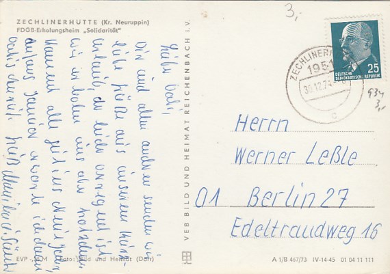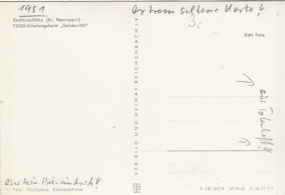 Zechlinerhütte Ostprignitz FDGB-Heim Solidarität 1967