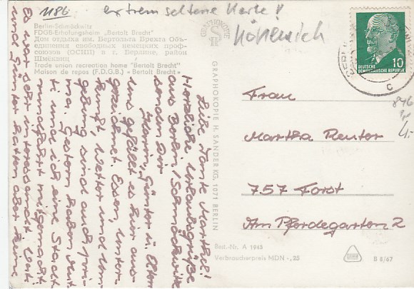 Berlin Köpenick Schmöckwitz FDGB-Heim Brecht 1967