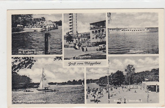 Berlin Müggelheim Müggelsee Müggelturm Foto Karte ca 1960