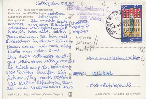 Gemeinde Heidesee OT Wolzig Ferienheim VEB BKW Lübbenau 1984