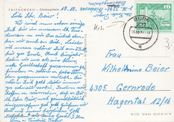 Friedensau bei Möckern Erholungsheim 1972