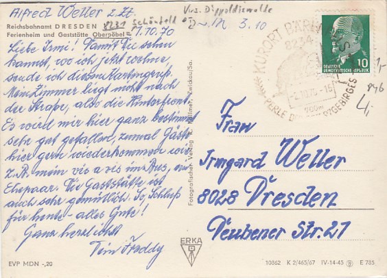 Oberbärenburg im Erzgebirge Fremdenheim Helenenhof 1984