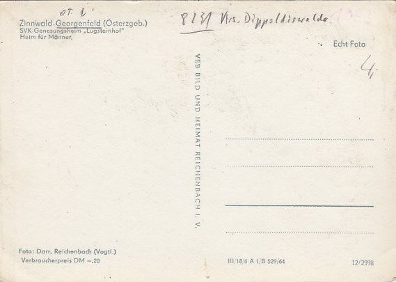 Zinnwald-Georgenfeld im Erzgebirge SVA Genesungsheim 1962