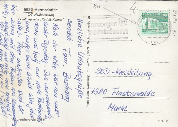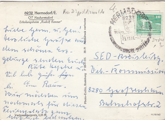 Hermsdorf im Erzgebirge OT Neuhermsdorf Erholungsheim Rudolf Renner 1982