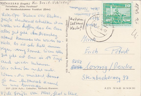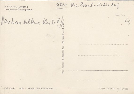 Nassau im Erzgebirge Ferienheim Altes Forsthaus Handwerkskammer Frankfurt Oder 1973