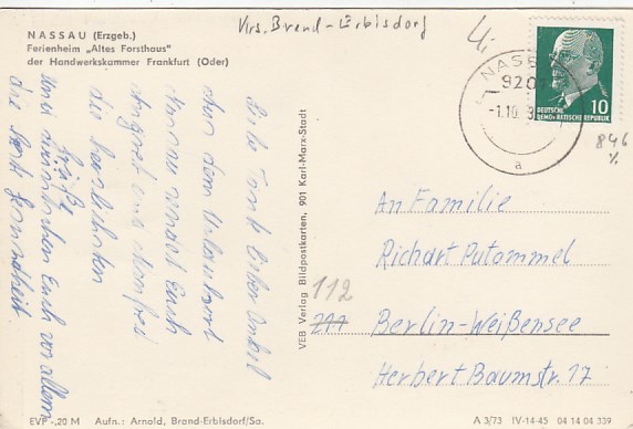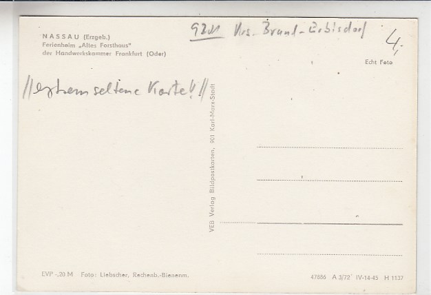 Nassau im Erzgebirge Ferienheim Altes Forsthaus Handwerkskammer Frankfurt Oder 1972