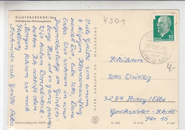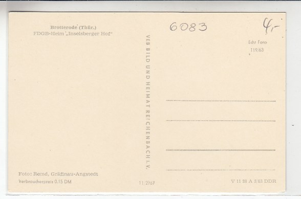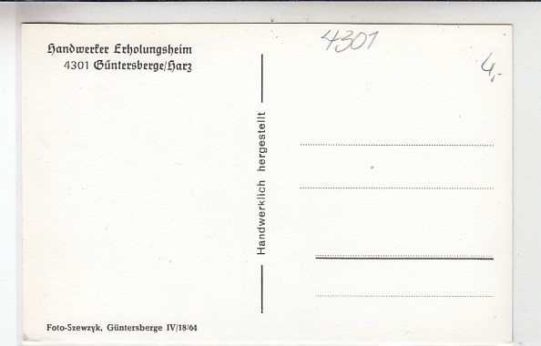 Güntersberge Harz Handwerker Erholungsheim 1964