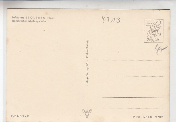 Stolberg Harz Handwerker-Erholungsheim 1966