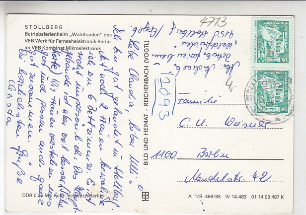 Stolberg Harz Ferienheim Waldfrieden VEB Berlin 1983
