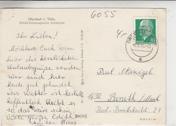 Oberbärenburg im Erzgebirge Erholungsheim Friedenswacht 1963