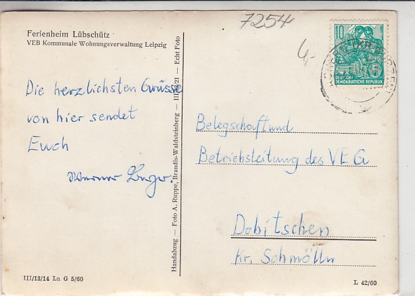 Lübschütz Ferienheim VEB Wohnungsverwaltung Leipzig 1960