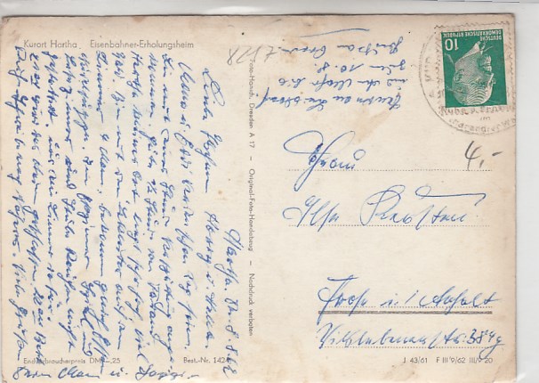 Kurort Hartha bei Tharandt Eisenbahner-Erholungsheim 1961
