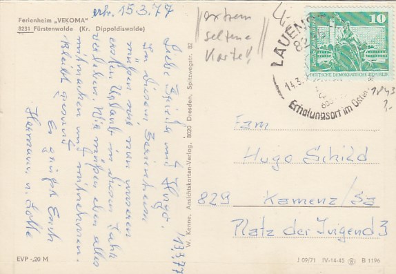 Fürstenwalde im Erzgebirge Ferienheim VEKOMA 1971