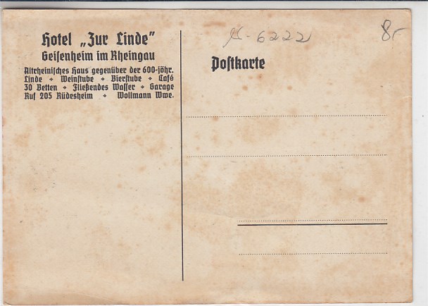 Geisenheim am Rhein Hotel Zur Linde ca 1935