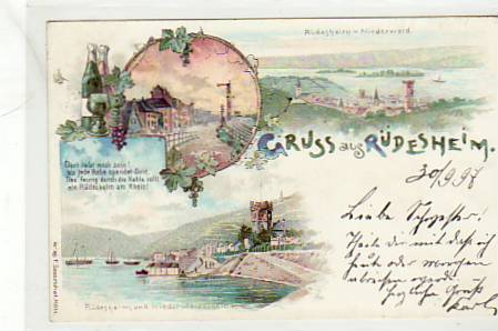 Rüdesheim im Rheingau Litho Ansichtskarte 1897