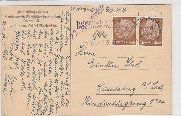 Schloss Dohna im Ortsteil Weesenstein der Gemeinde Müglitztal Heimatschutzpostkarte Dresden 1939
