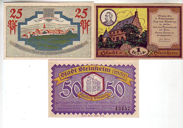 Steinheim 3 Scheine Notgeld mit Bildern der Stadt