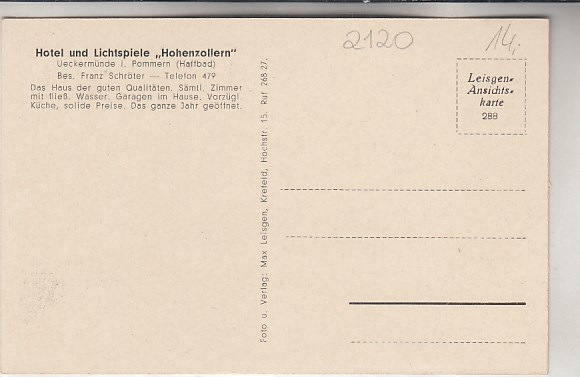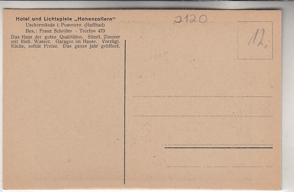 Ueckermünde Hotel und Kino Hohenzollern ca 1935