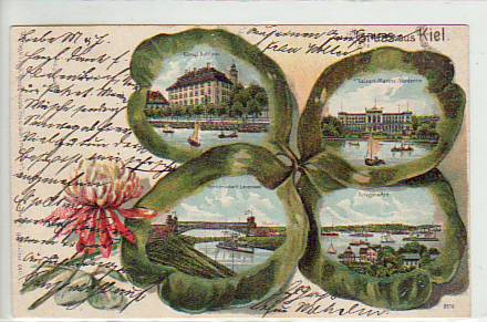 Kiel Kleeblatt Litho Prägekarte 1903