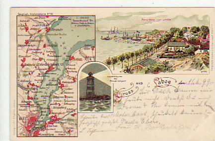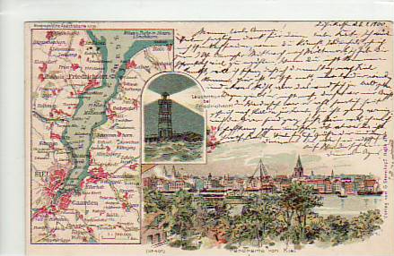 Kiel mit Leuchtturm und Landkarte 1900