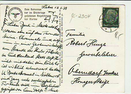 Deutsche Marine Schiffspost-Seepost Hohenzollern,Kiel