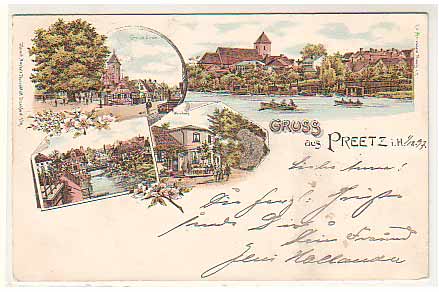 Preetz , Holstein Bahnpost Kiel-Lübeck Litho 1897