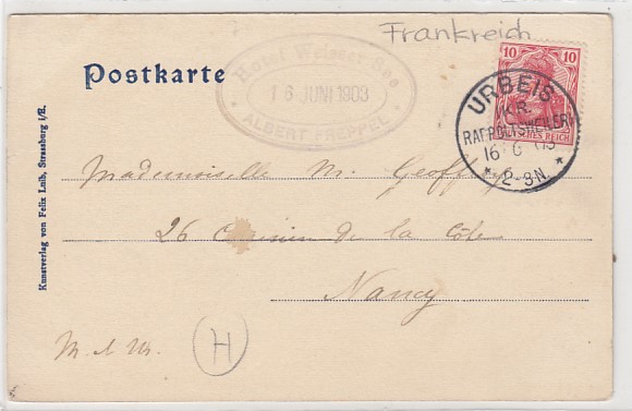 Hotel Altenberg Münster Muenster Elsass Frankreich 1904