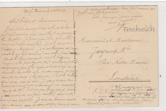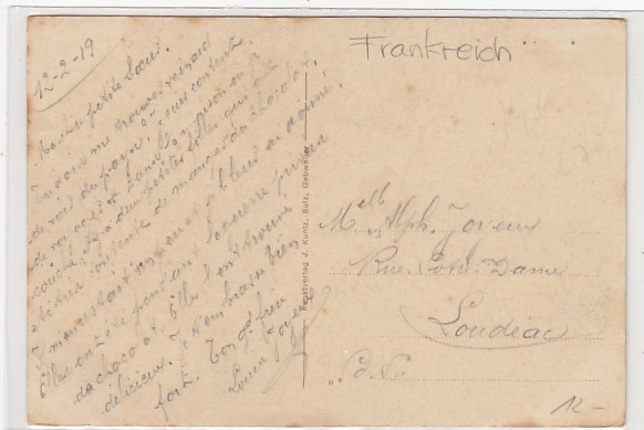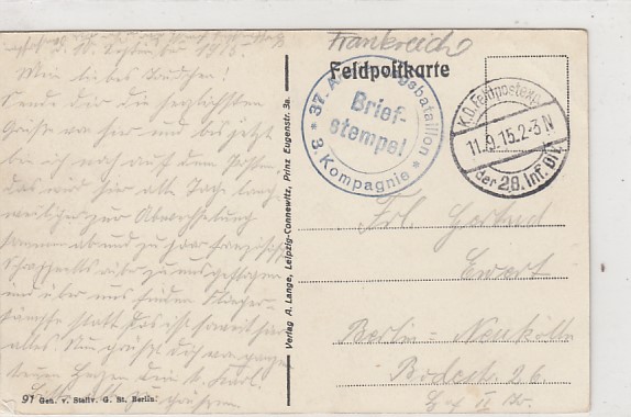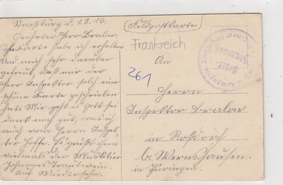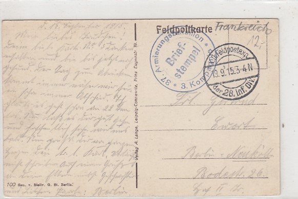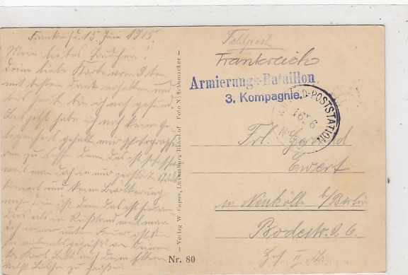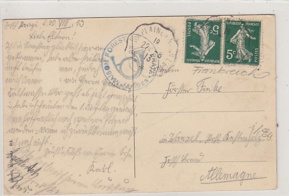 Militär 1. WK Feldpoststempel Glacerie de Saint-Gobain Frankreich Glaserei Handwerk 1915