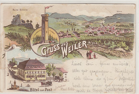 Altmünsterol Montreux-Vieux Elsass Alt Menschtral Bahnhof Wappen Prägekarte ca 1900 Frankreich