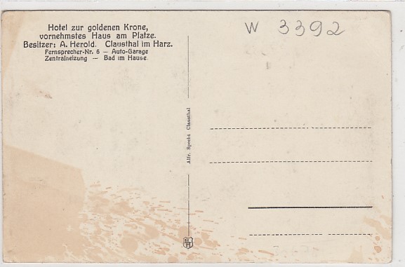 Clausthal-Zellerfeld im Harz Hotel zur goldenen Krone ca 1920