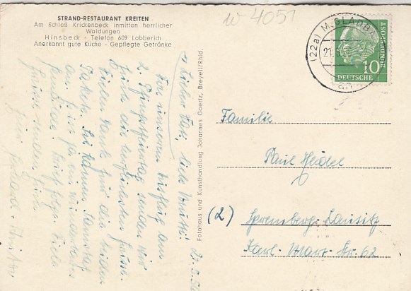 Restaurant Kreiten Schloß Kirchenbeck Hinsbeck Lobberich 1956