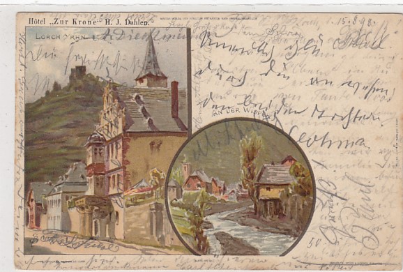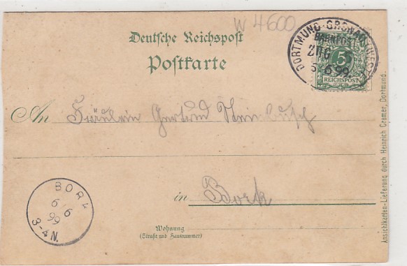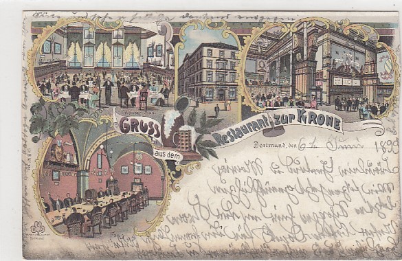 Dortmund Restaurant zur Krone Litho Ansichtskarte Bahnpoststempel 1899