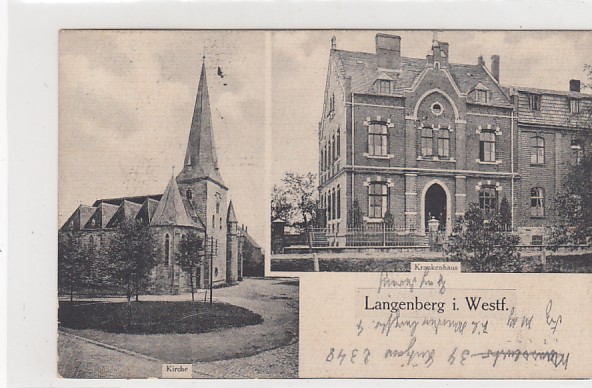 Langenberg Westfalen bei Rheda-Wiedenbrück Kirche und Krankenhaus 1927