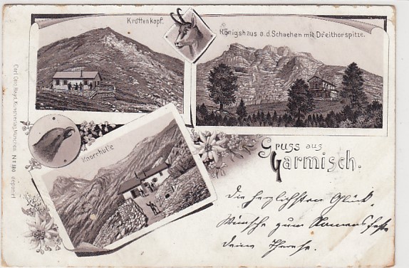 Garmisch-Partenkirchen Litho Vorläufer Krottenkopf Knorrhütte Königshaus an der Scharhen 1896