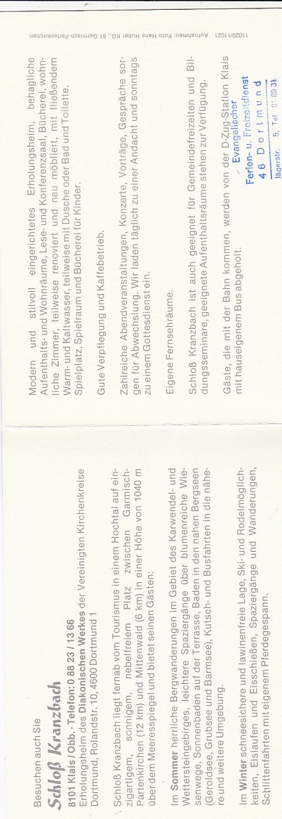 Klais Schloss Kranzbach ca 1975 Klappkarte