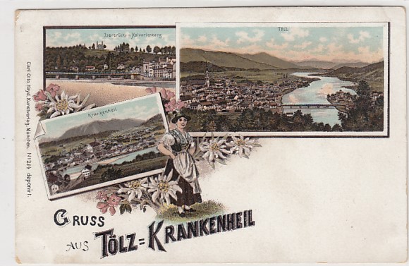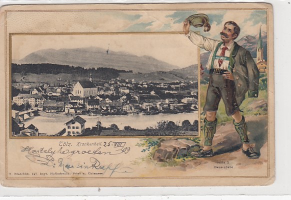 Bad Tölz Krankenheim Trachten Prägekarte ca 1900