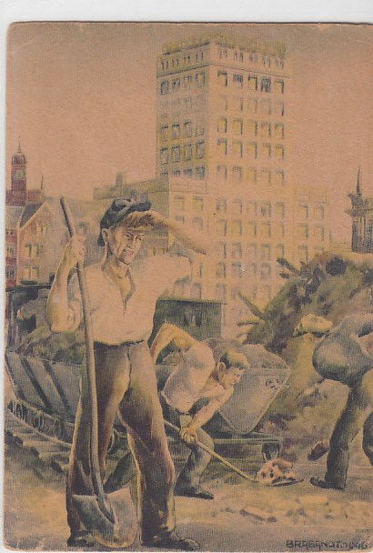 Hosena Eishockey Fabrik Kraftwerk Bagger im Bau Rückseite auf Russisch 1970