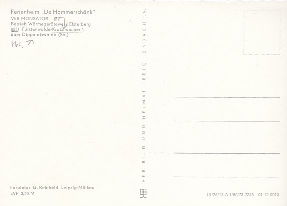 Fürstenwalde OT Kratzhammer Ferienheim Elsterberg 1972