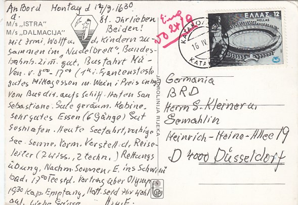 Urlauberschiffe Kreuzfahrten Bremen Schiffspoststempel 1961
